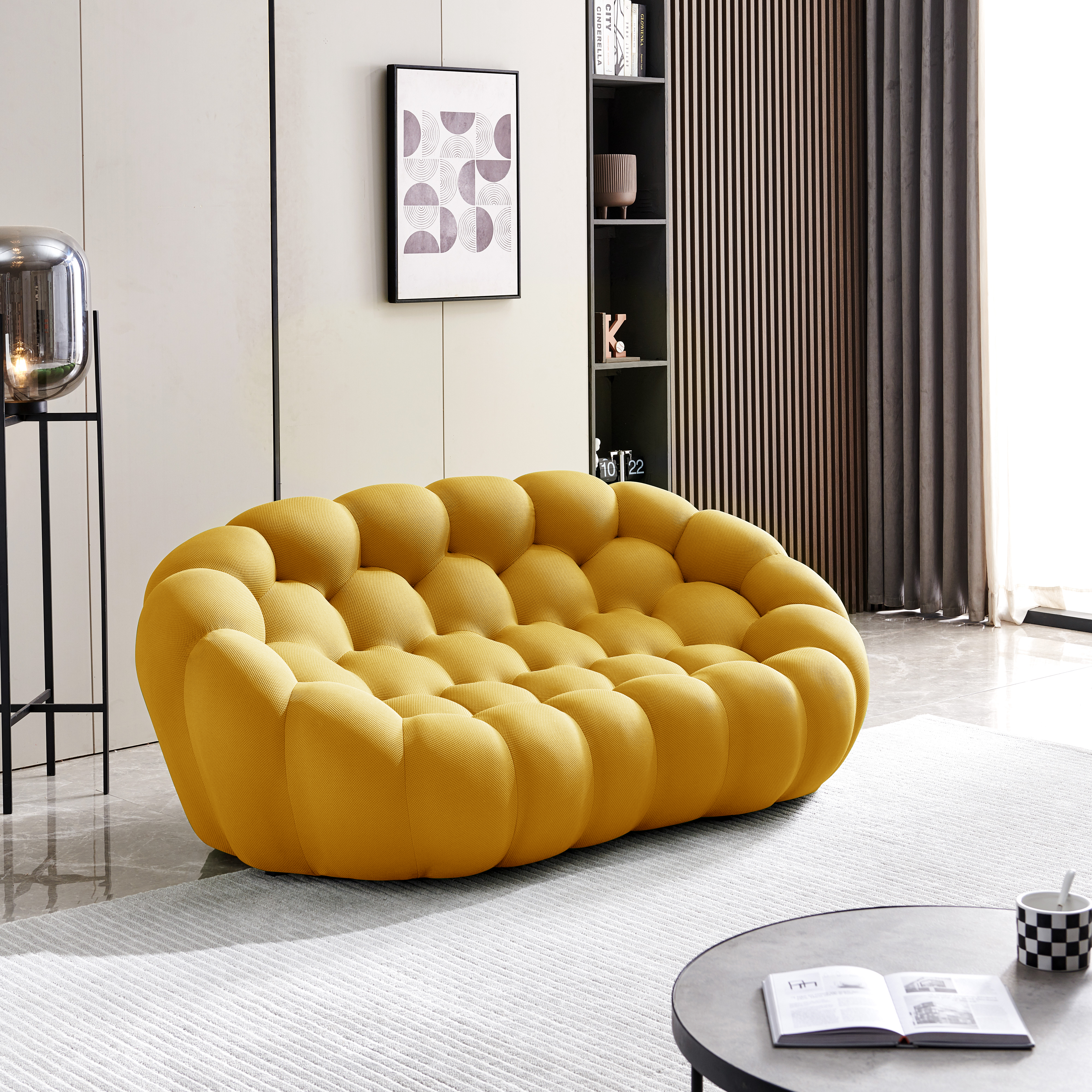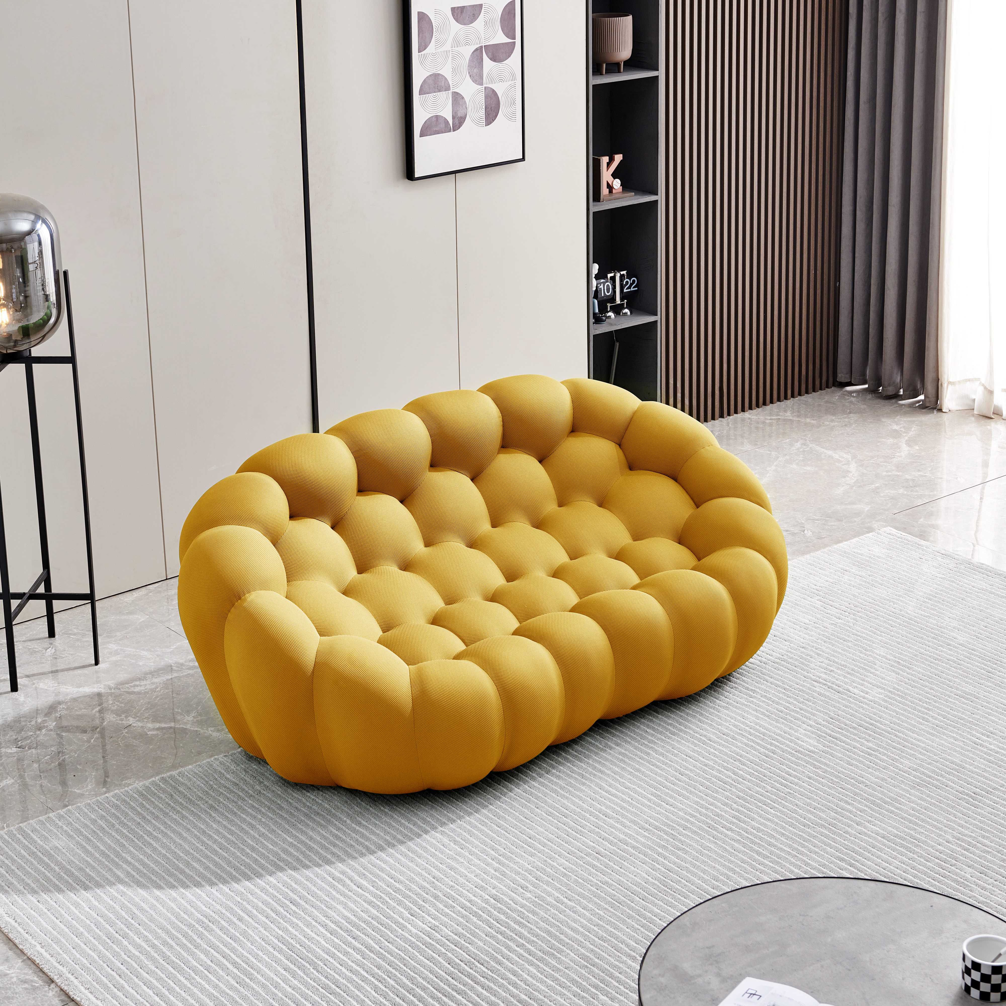 • Гармония обивки и цвета: жёлтый, как спелый лимон, меш заряжает пространство чистой энергией, а его тактильная мягкость успокаивает и расслабляет тело. Он действует как визуальный антидепрессант, разгоняя хандру и стимулируя общение, при этом даря владельцу ощущение, что его дом — светлое и позитивное место.