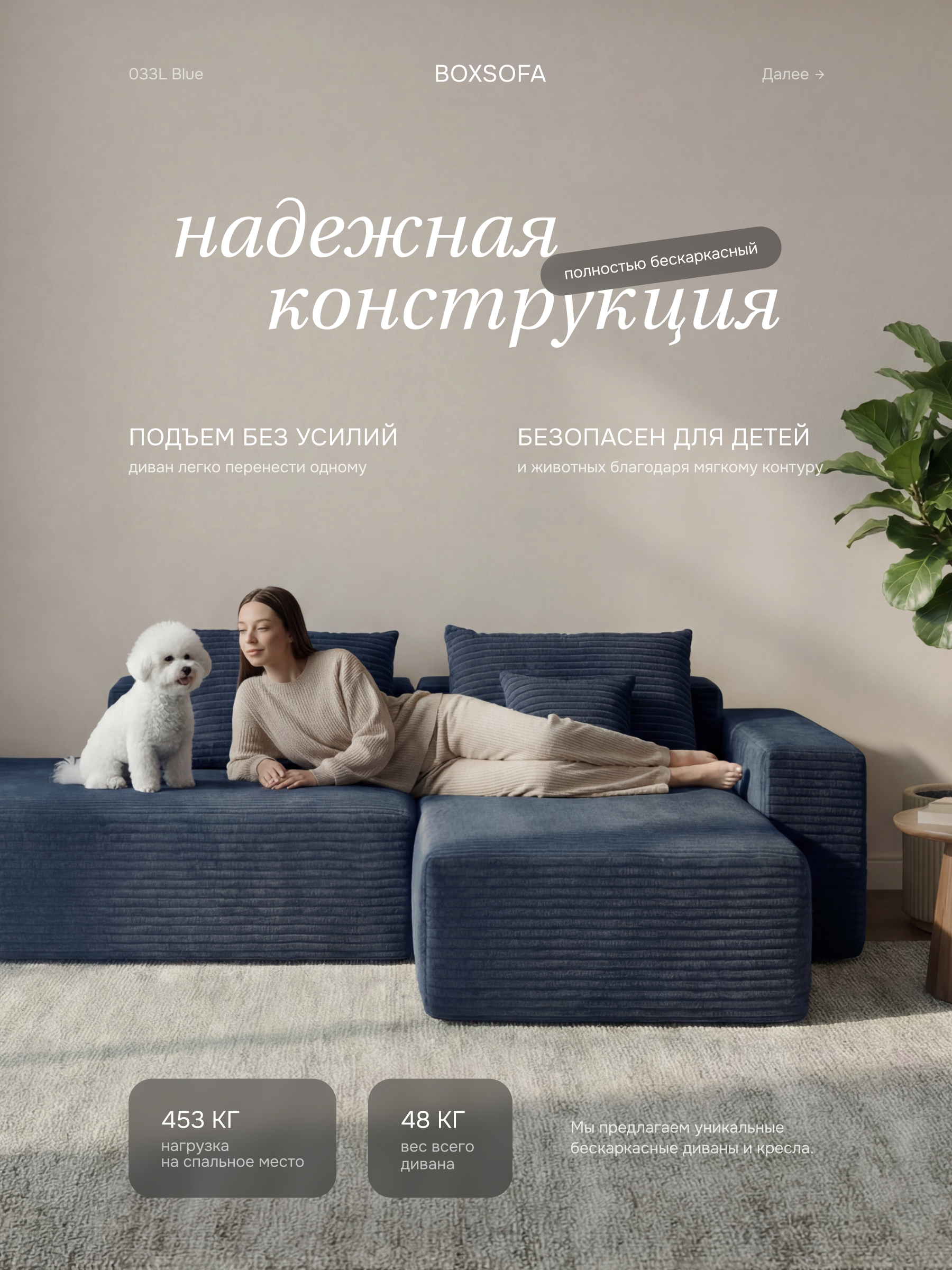 • Бескаркасный диван – идеальная анатомия покоя: бескаркасный диван из 3D-пенополиуретана повторяет контуры вашего тела, обеспечивая индивидуальную поддержку позвоночника. Он исключает точки давления, которые создают жесткие конструкции, гарантируя глубокое расслабление каждой мышцы.