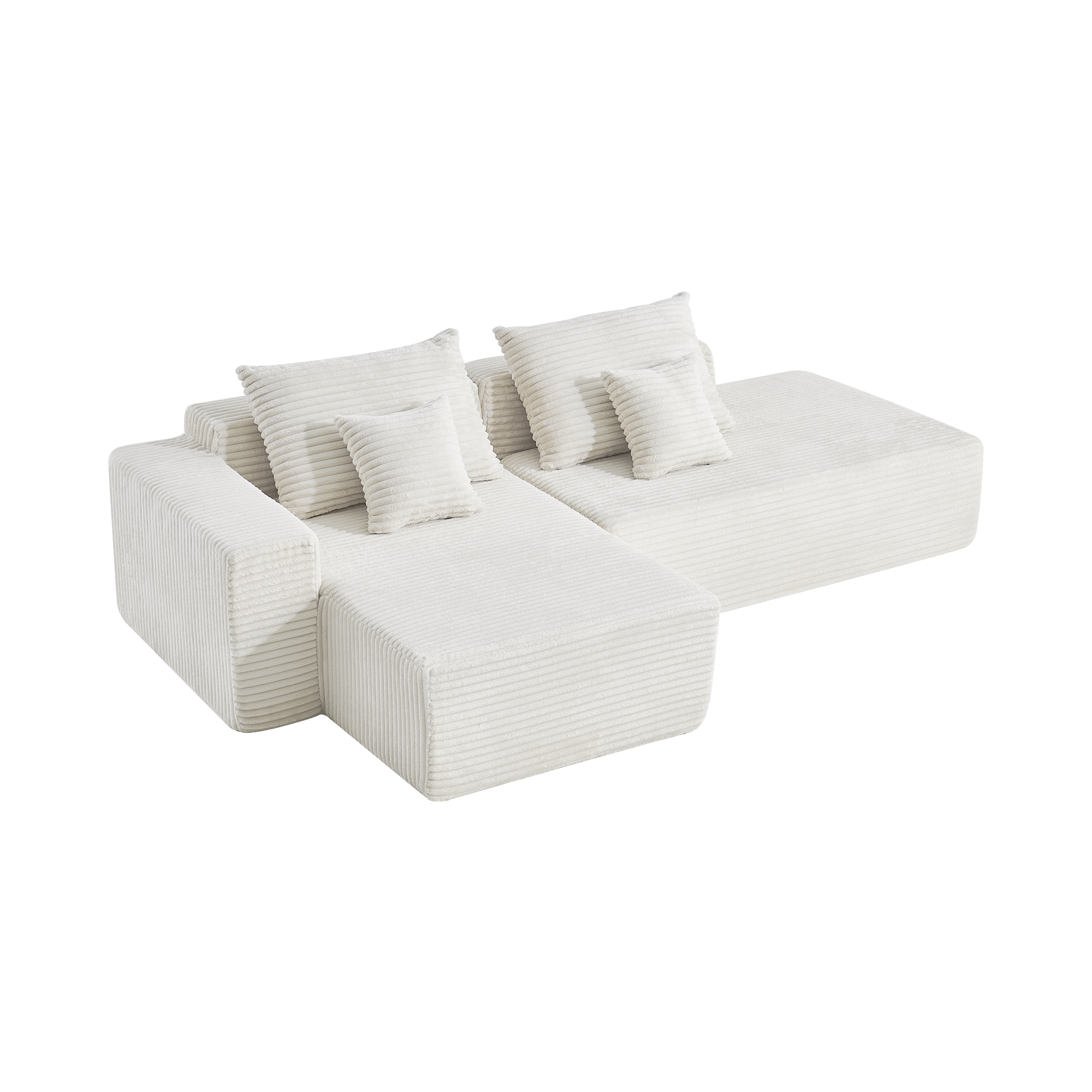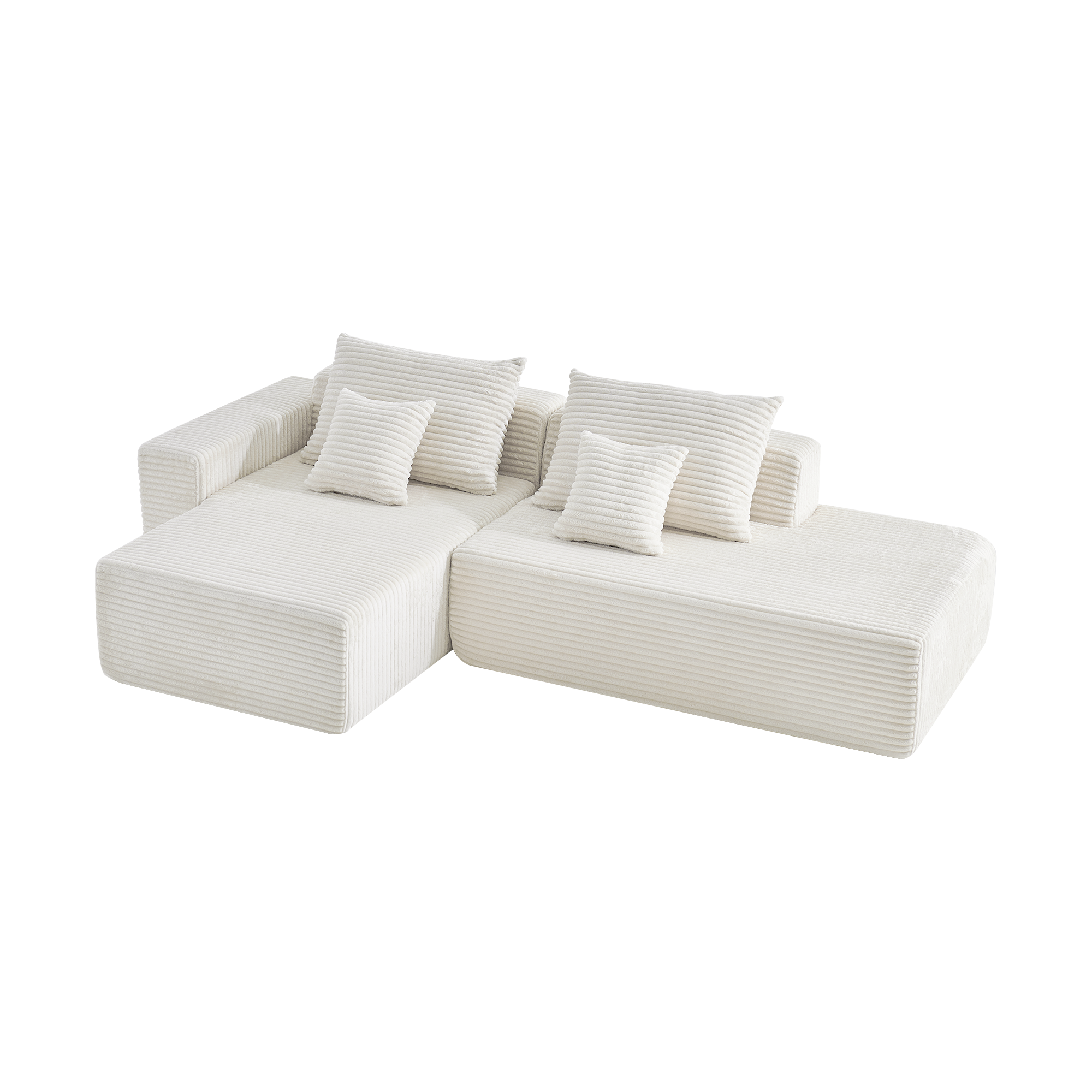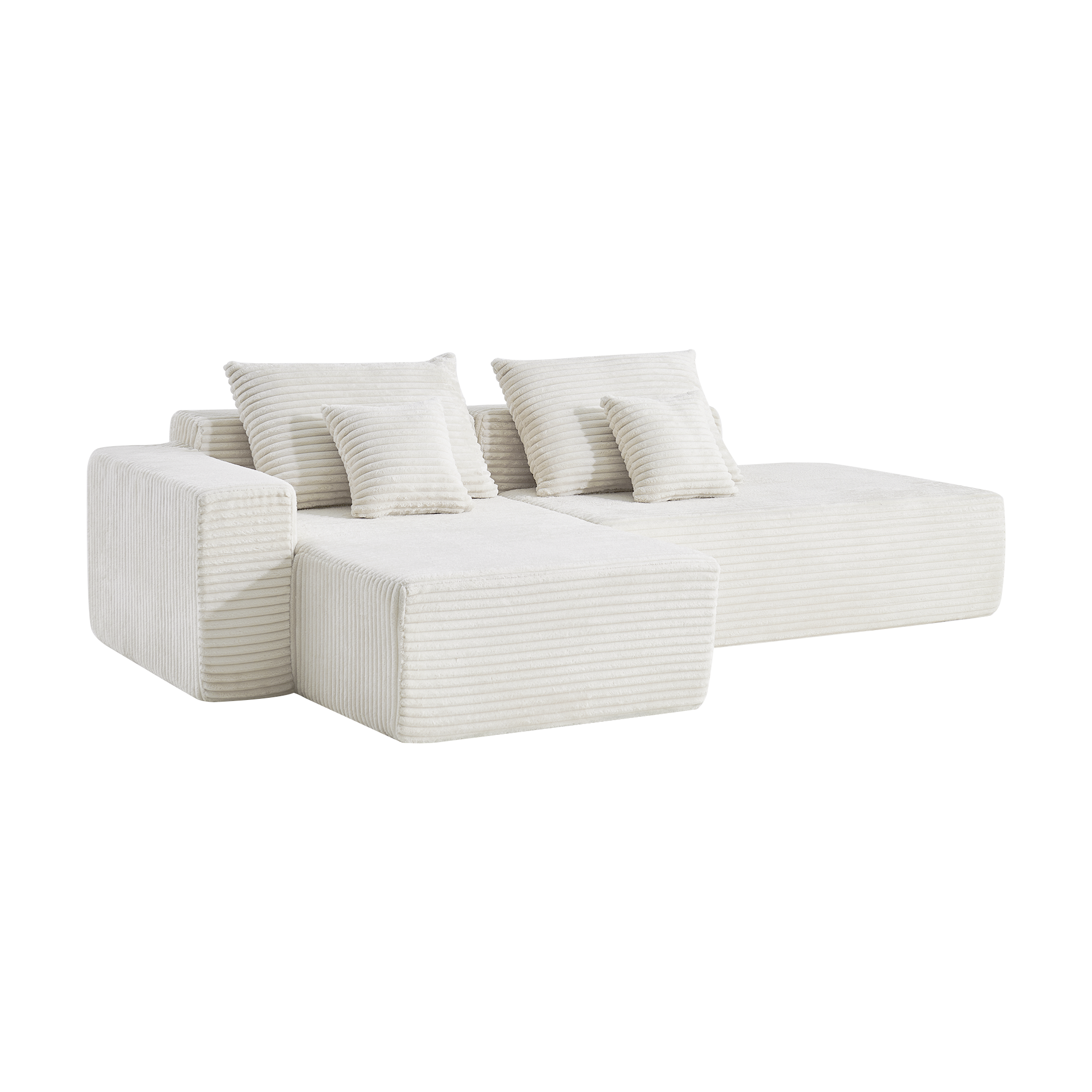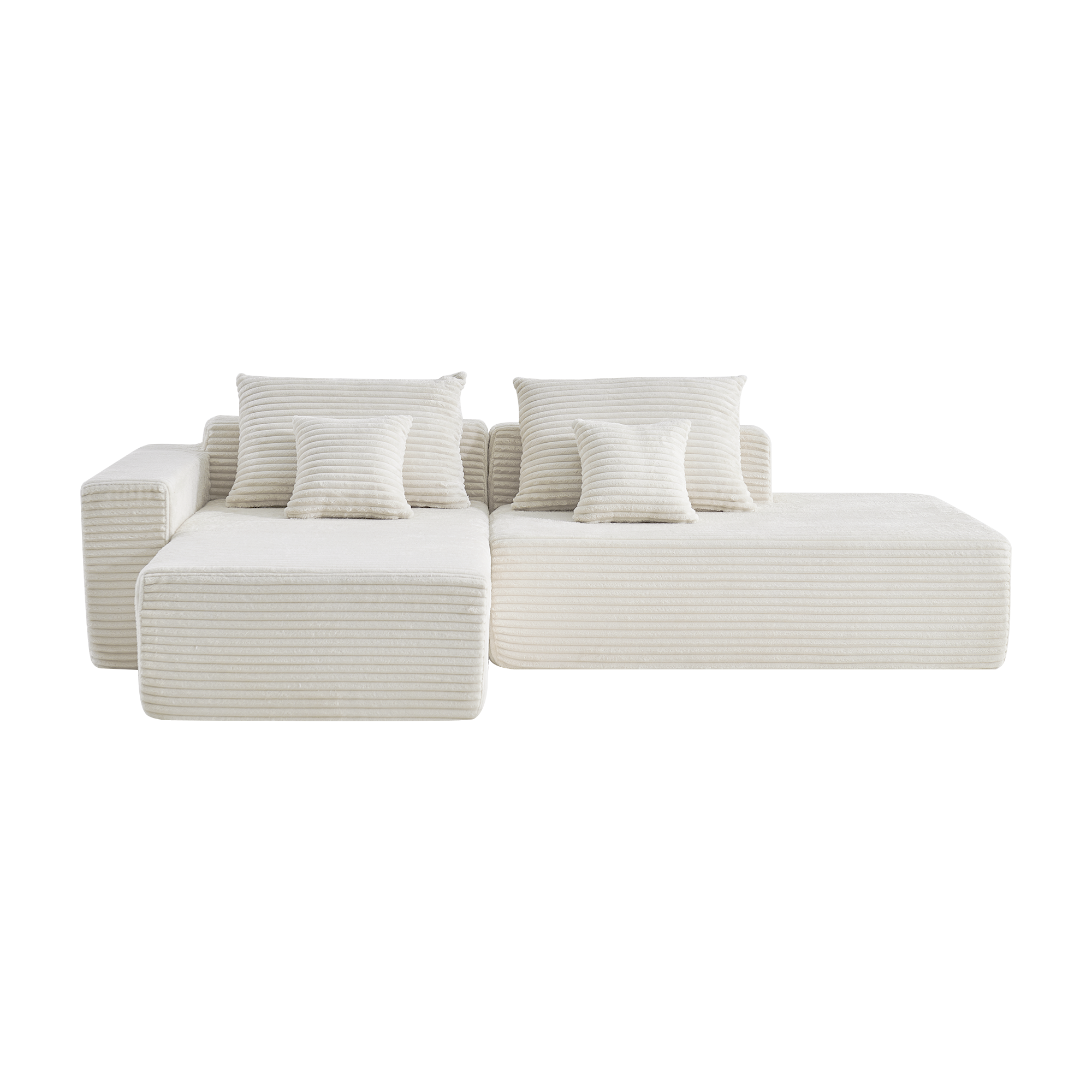 Угловой бескаркасный диван S033R белый, размер 267×56×151 см