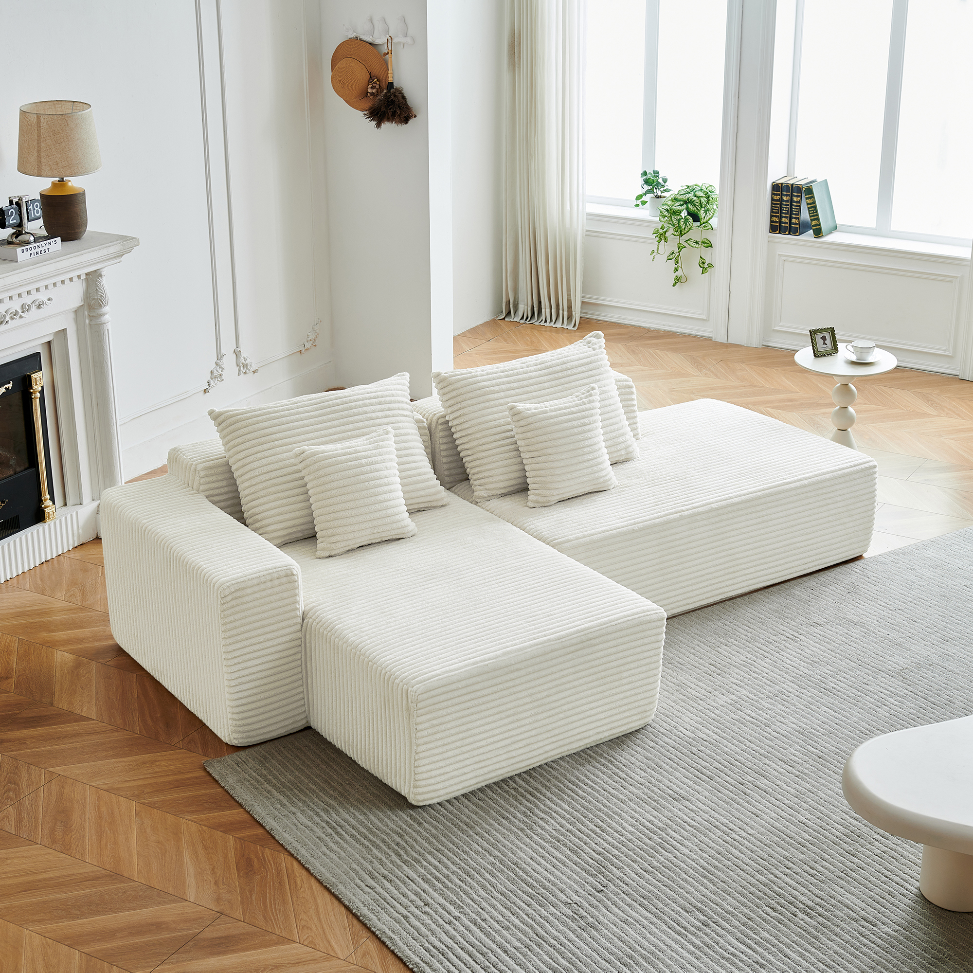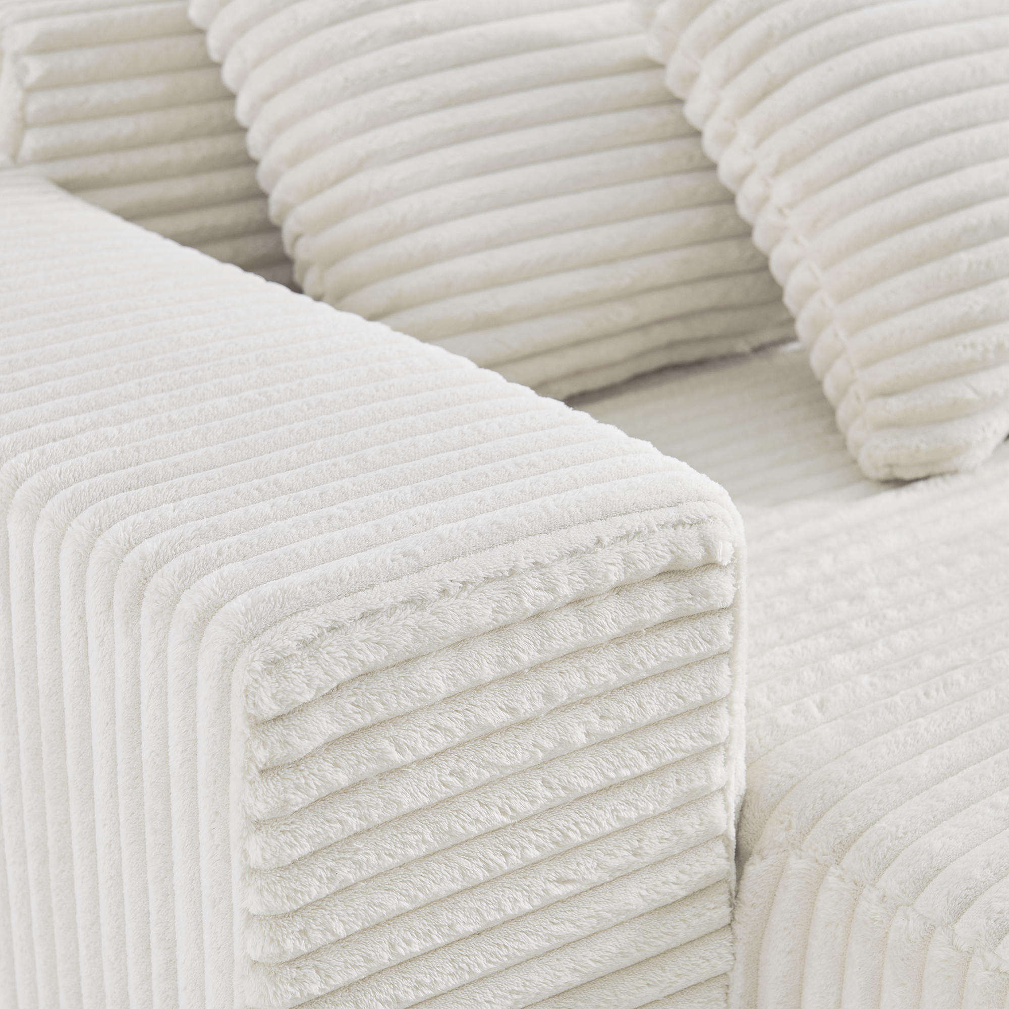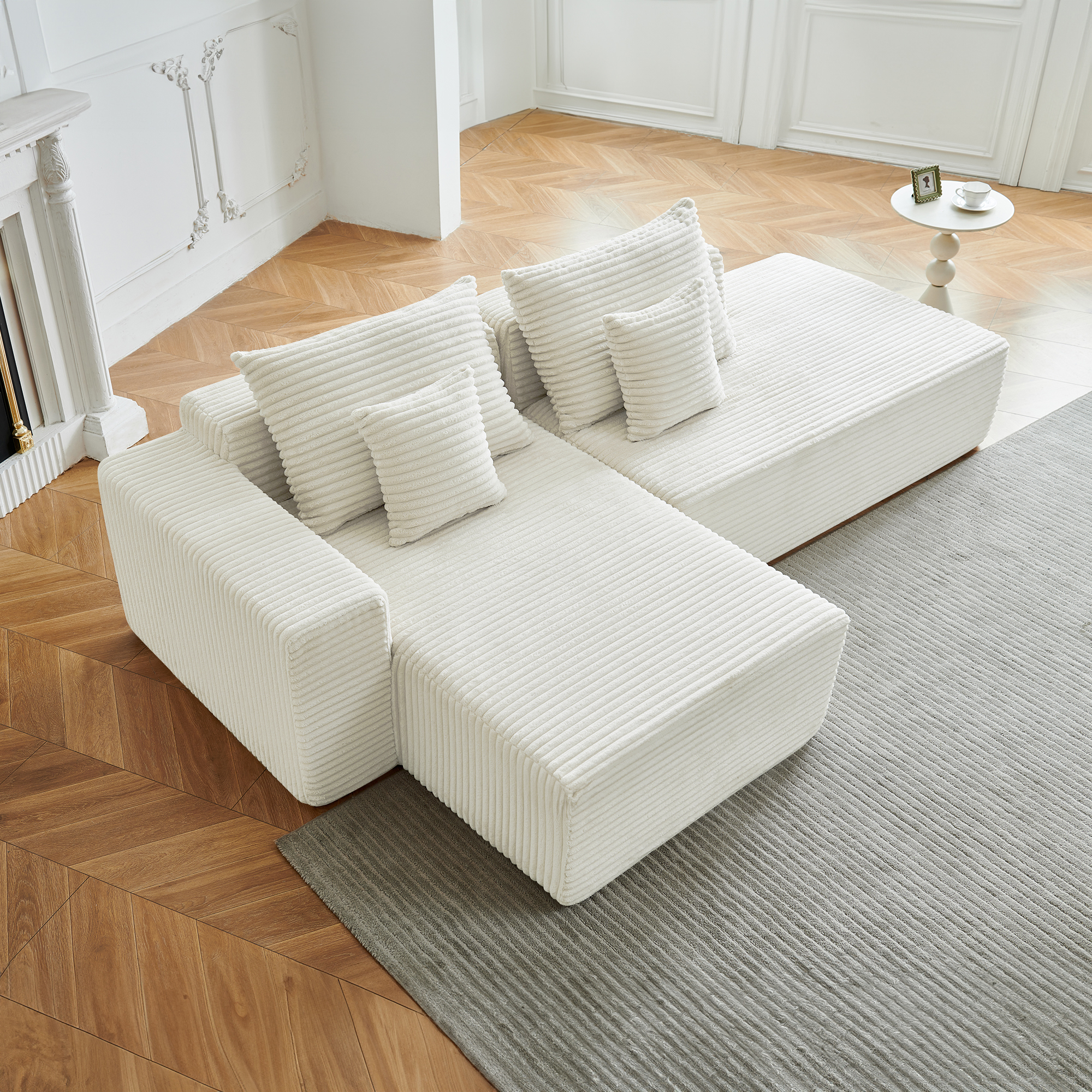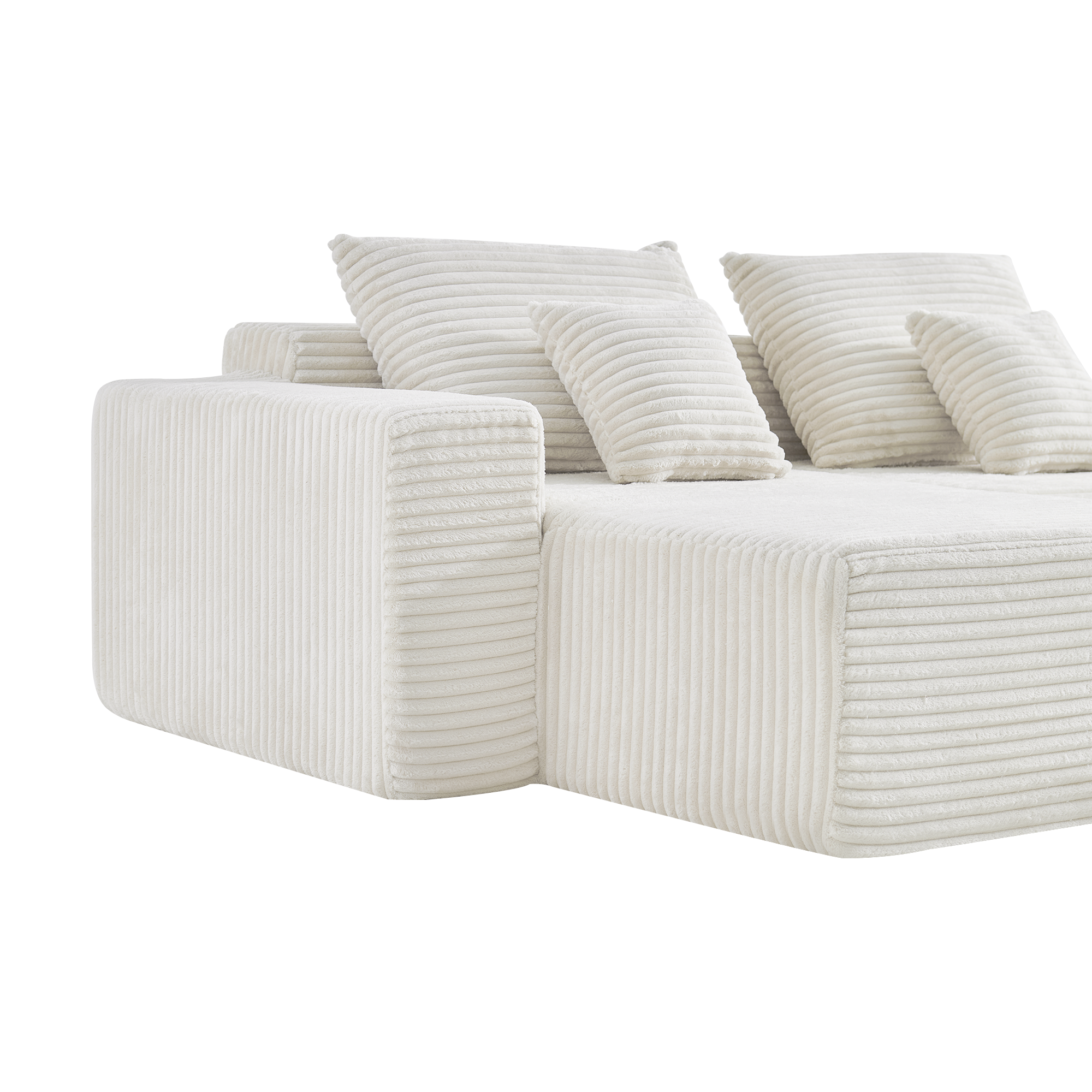 Угловой бескаркасный диван S033R белый, размер 267×56×151 см