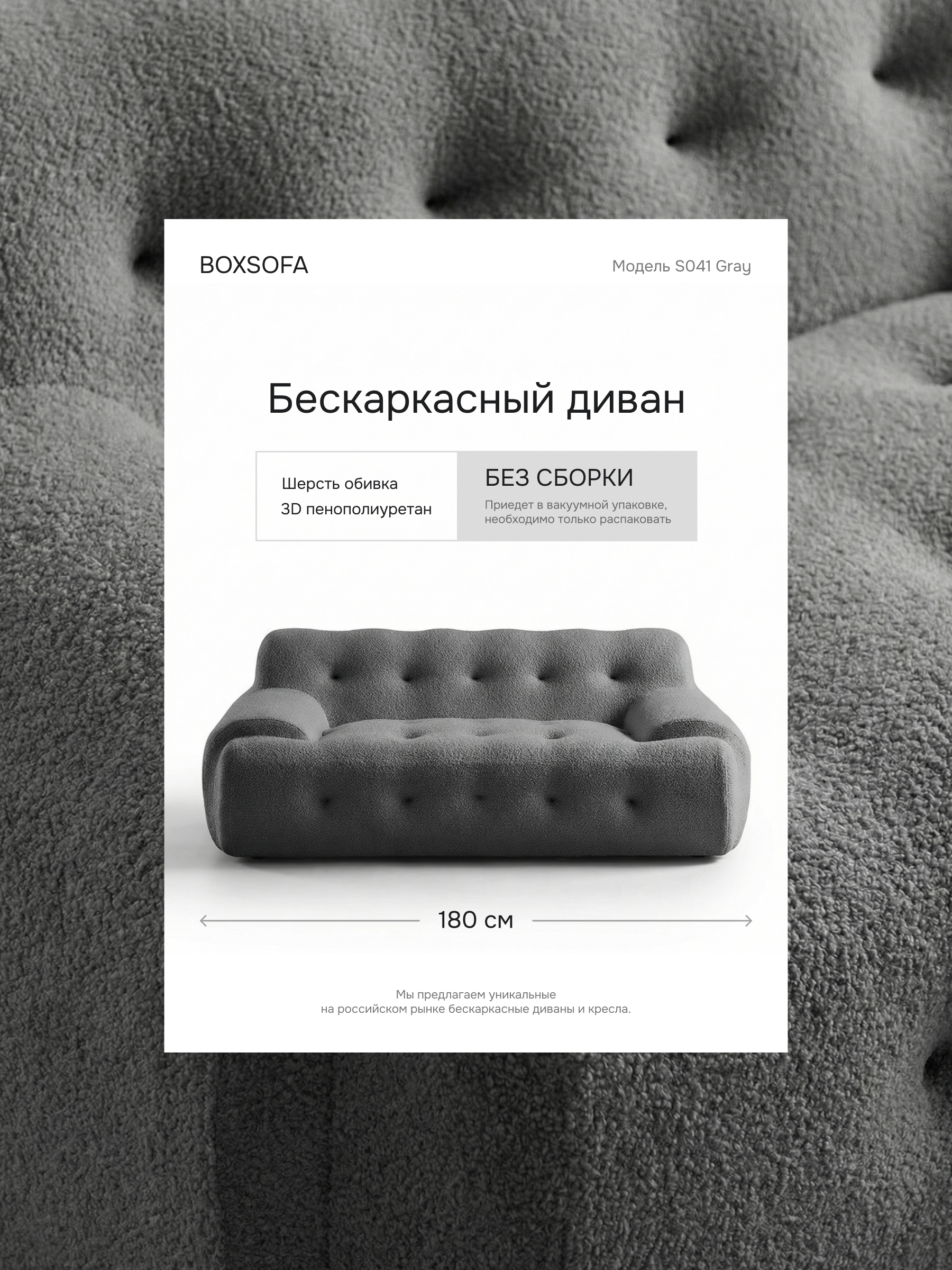 Бескаркасный диван – идеальная анатомия покоя: бескаркасный диван из 3D-пенополиуретана повторяет контуры вашего тела, обеспечивая индивидуальную поддержку позвоночника. Он исключает точки давления, которые создают жесткие конструкции, гарантируя глубокое расслабление каждой мышцы.