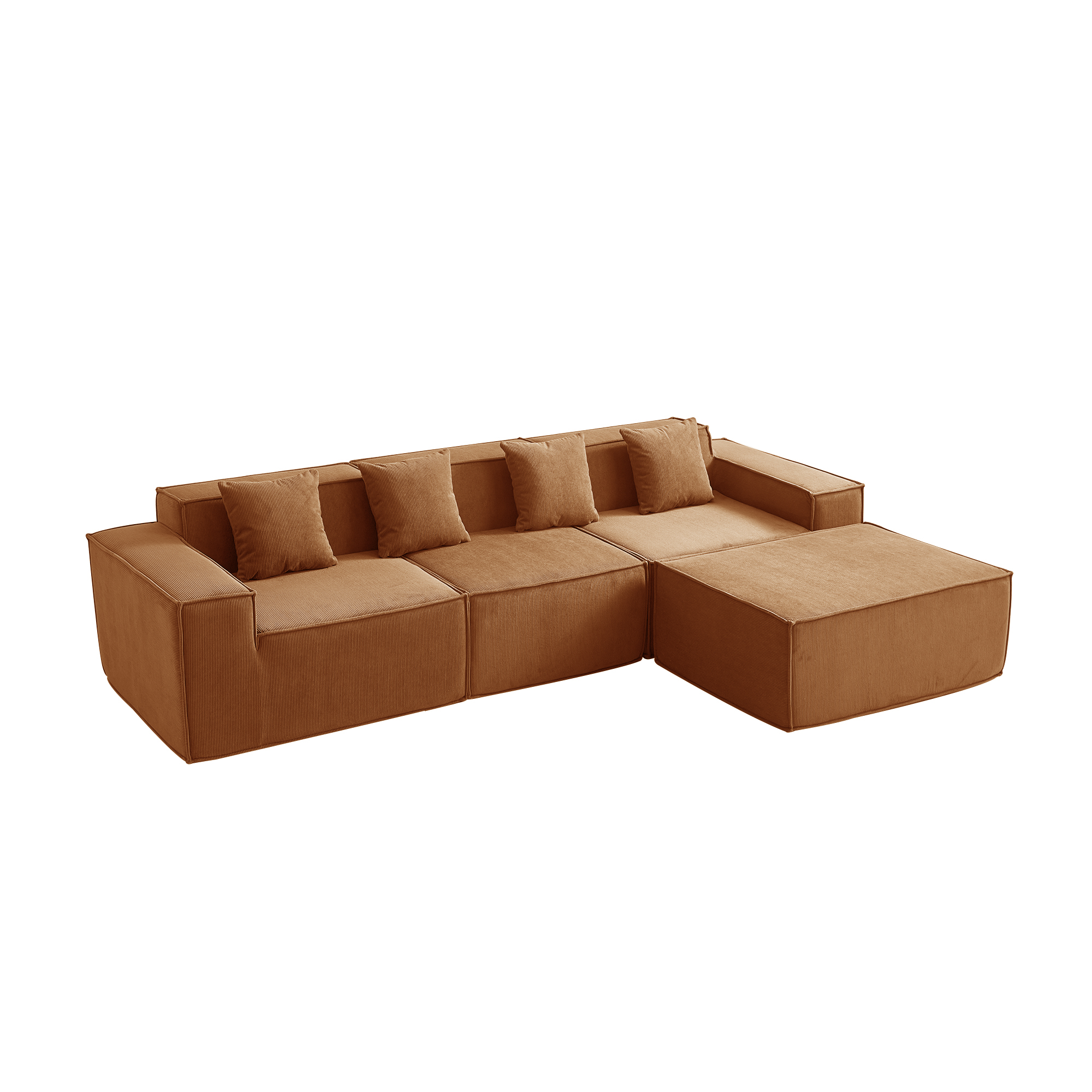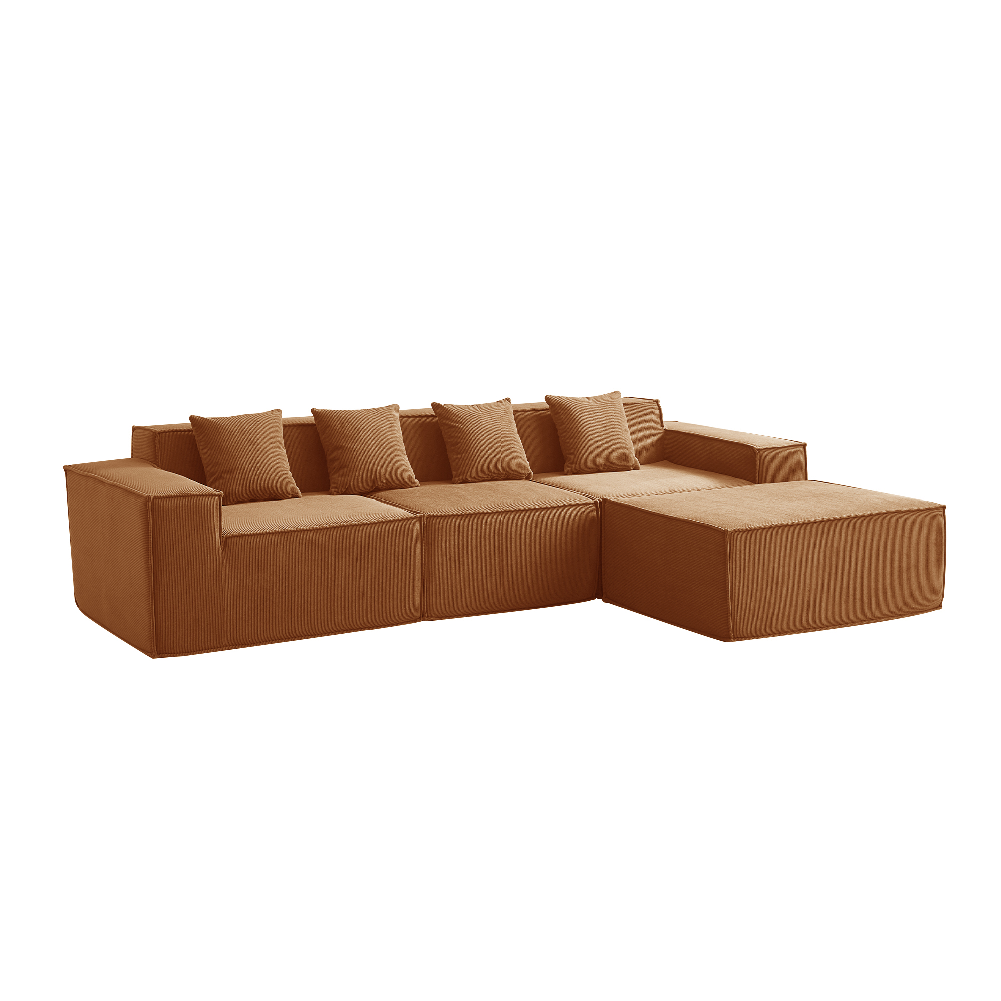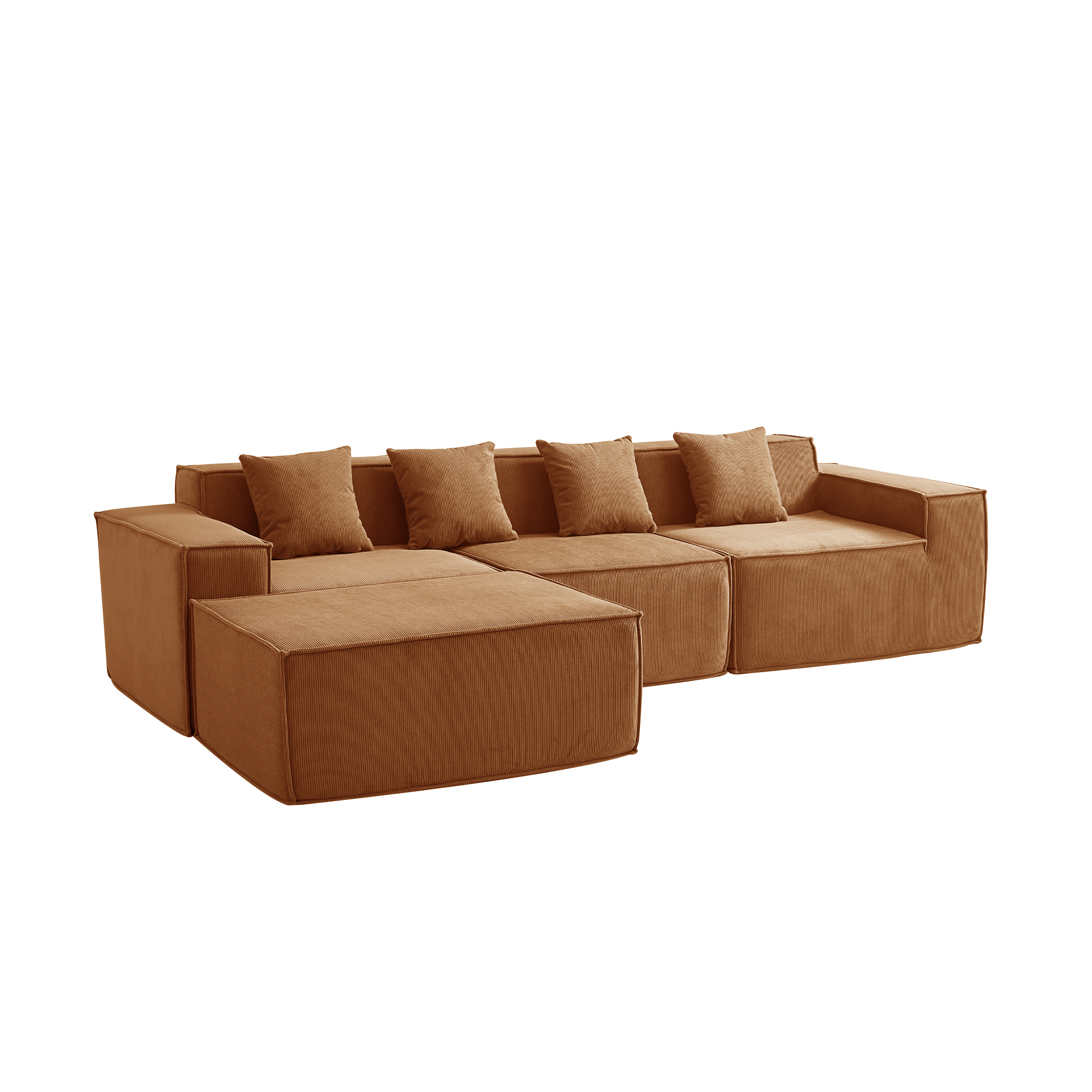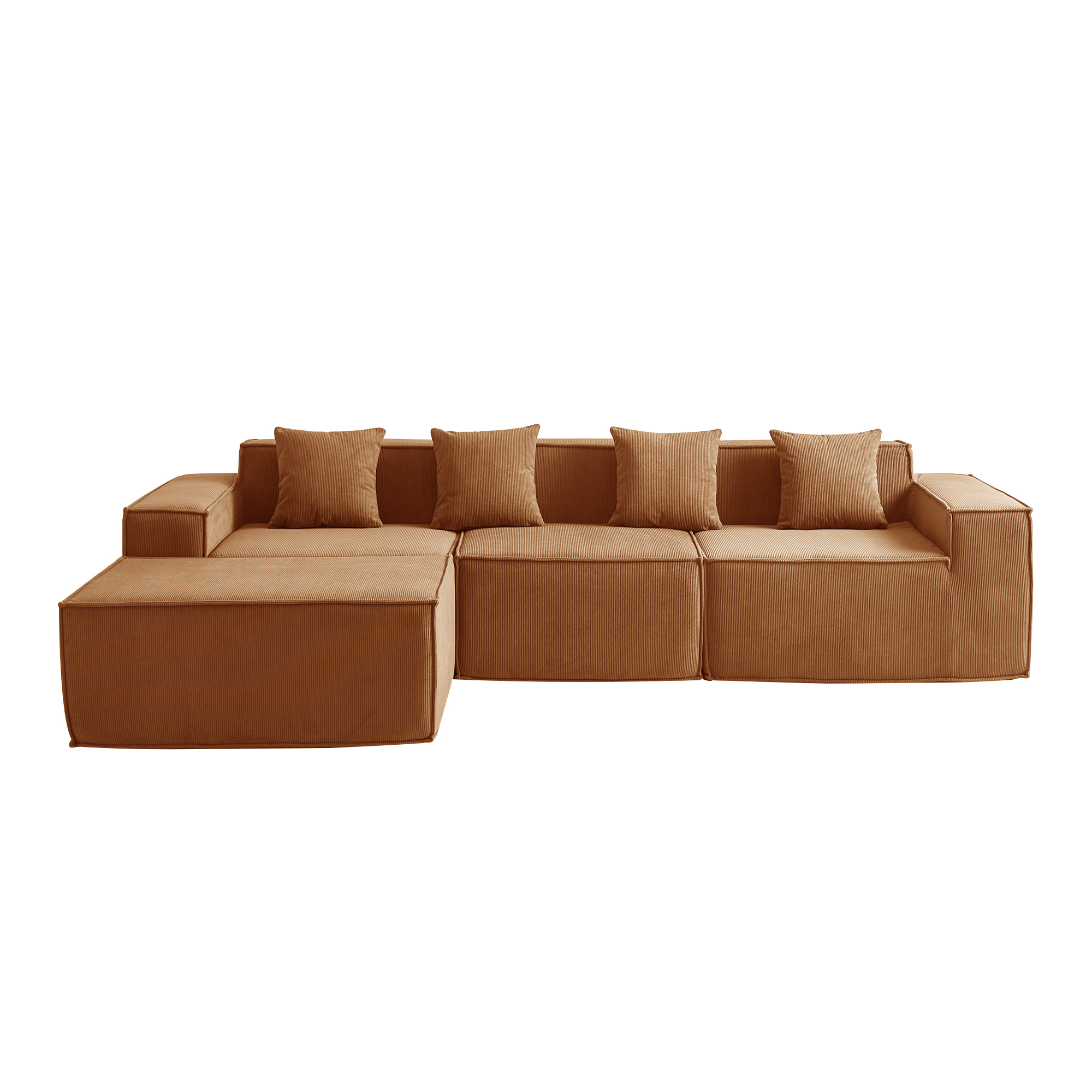 Угловой бескаркасный диван S044 оранжевый, размер 277×65×164 см