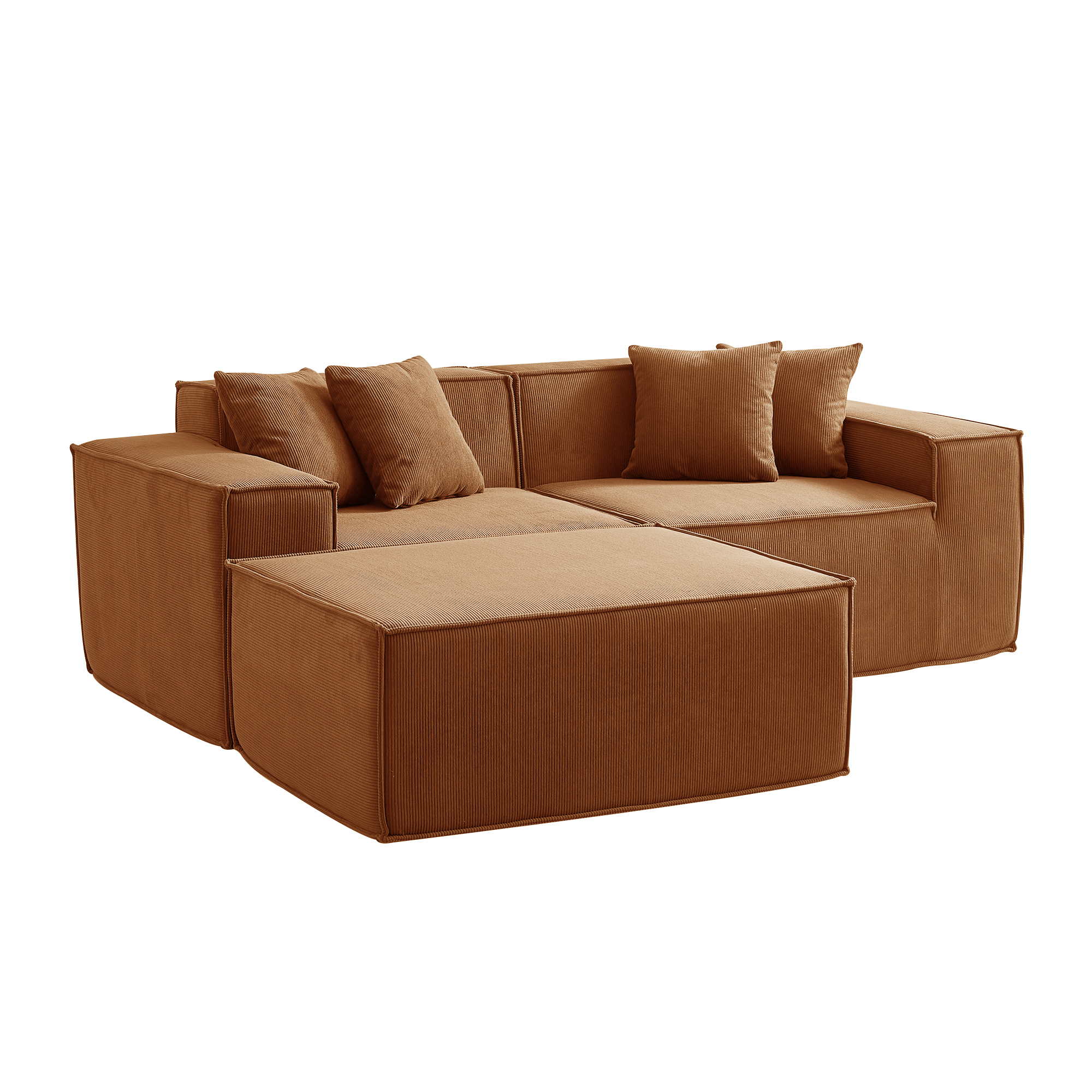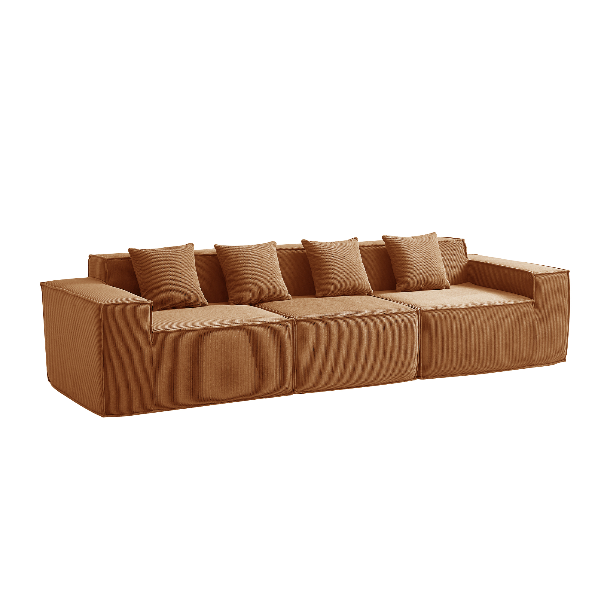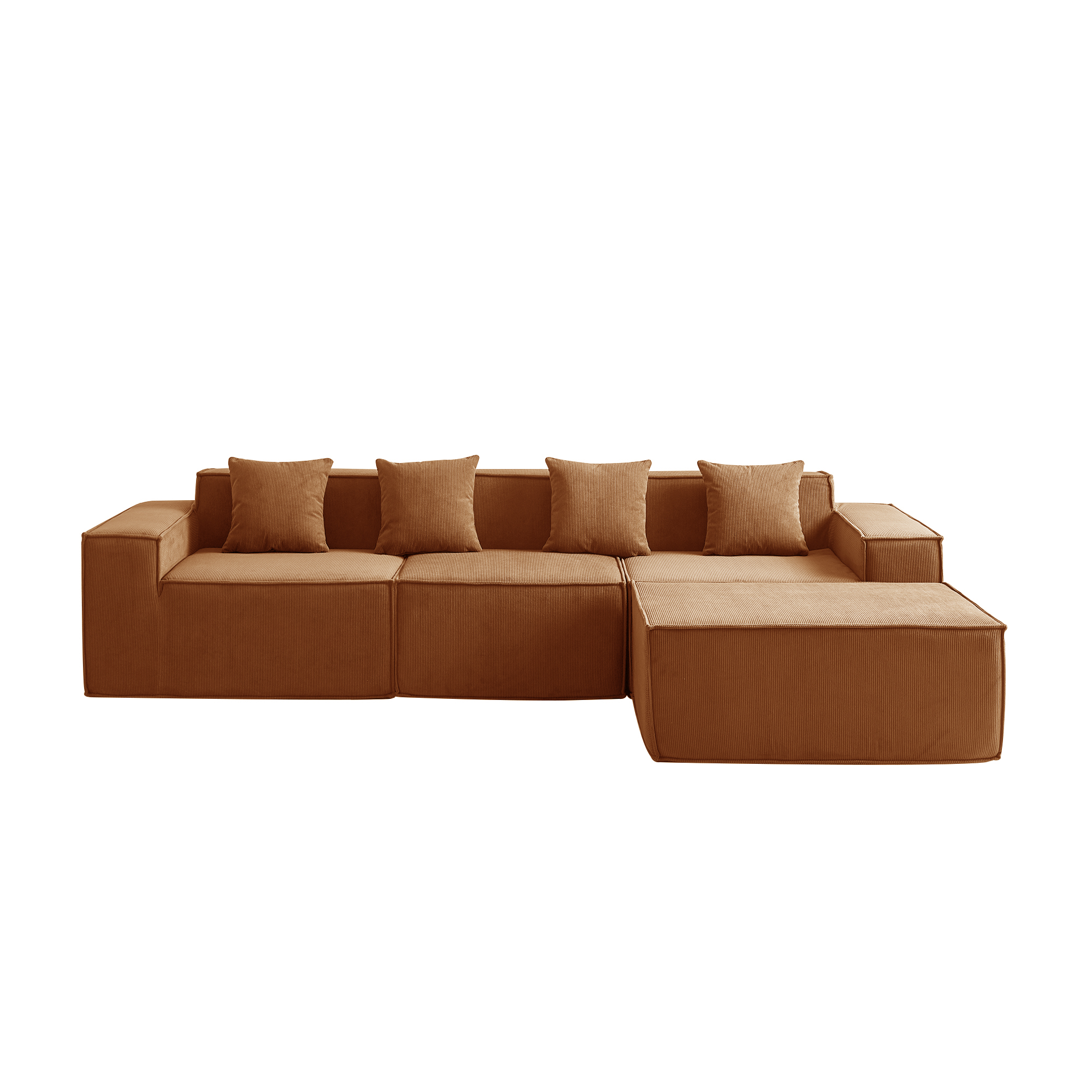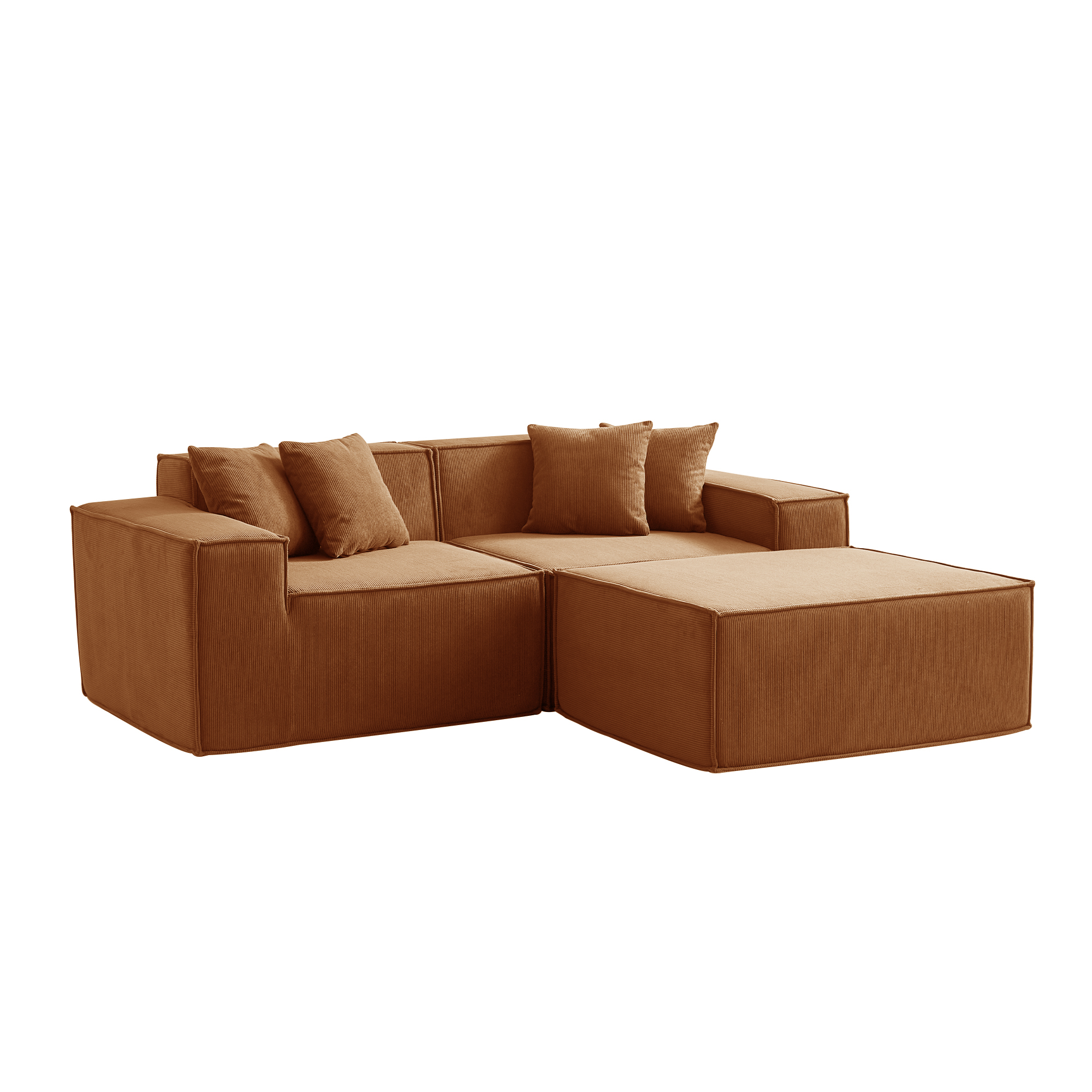 Угловой бескаркасный диван S044 оранжевый, размер 277×65×164 см