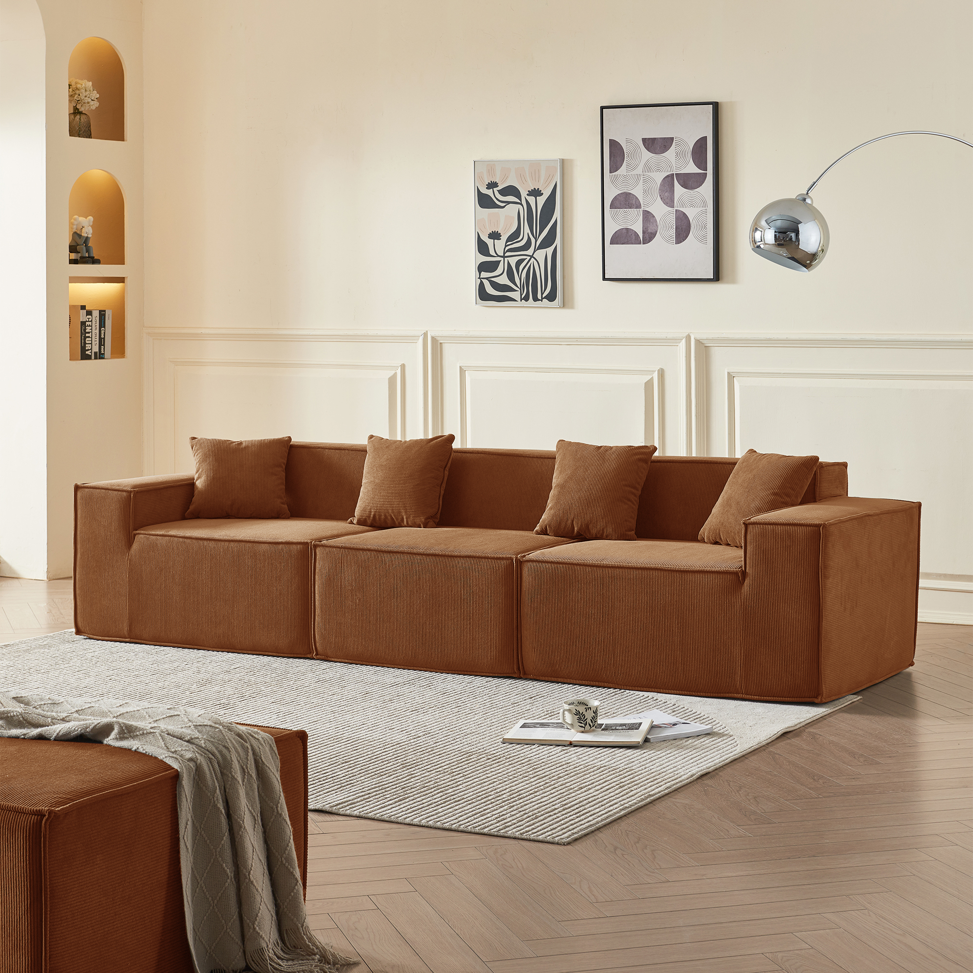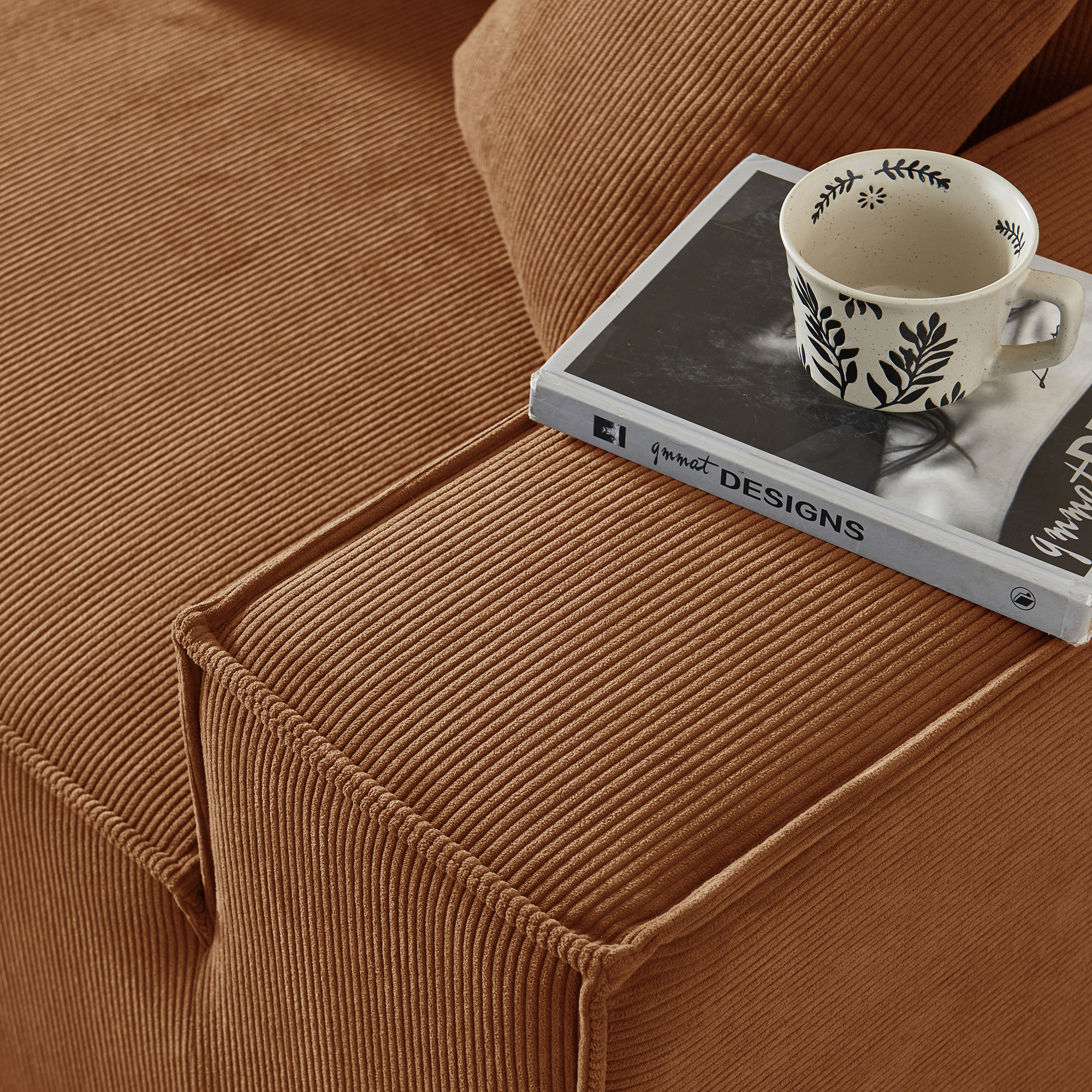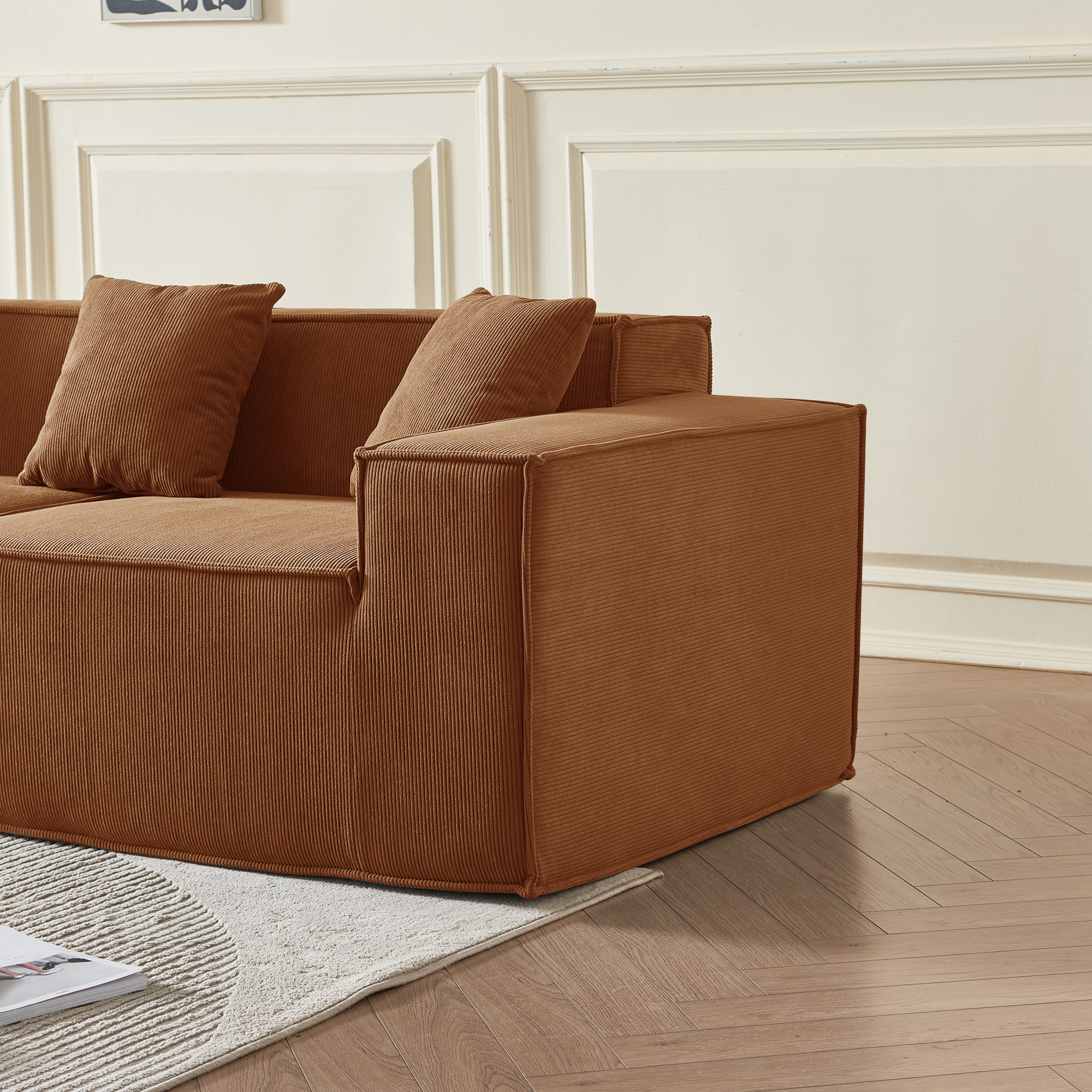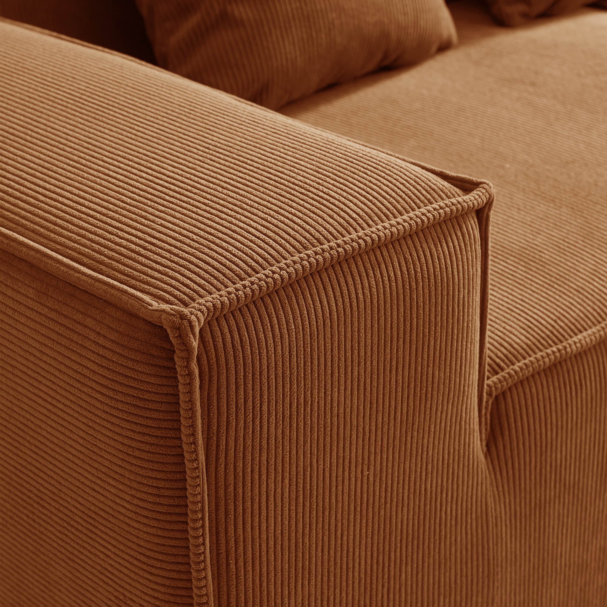 • Гармония обивки и цвета: оранжевый вельвет — это тактильное тепло и свет: его ворс нежно контактирует с кожей, обеспечивая идеальную вентиляцию и прохладу. В интерьере этот насыщенный, но не кричащий оттенок наполняет пространство атмосферой позднего осеннего солнца, создавая не броский, а глубинный акцент тепла, стабильности и гостеприимства, который успокаивает и настраивает на неторопливый отдых.