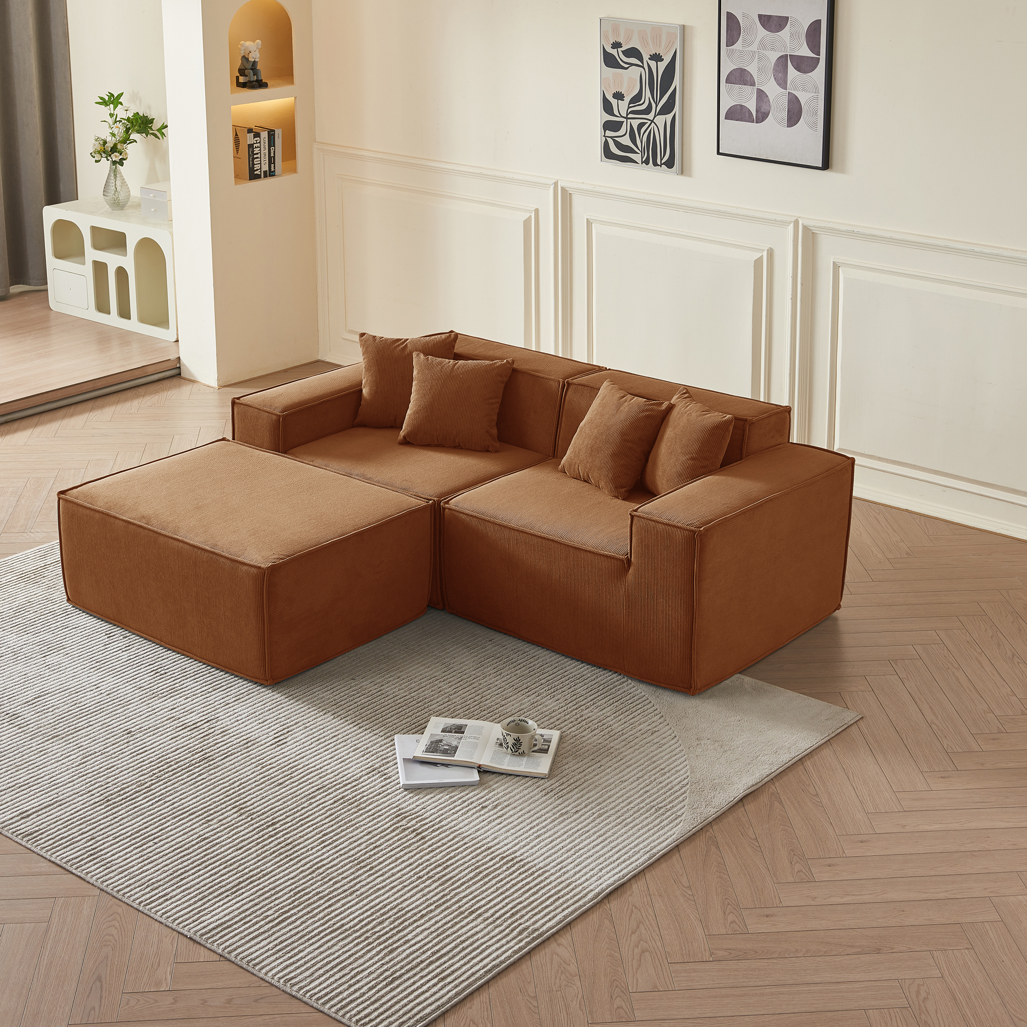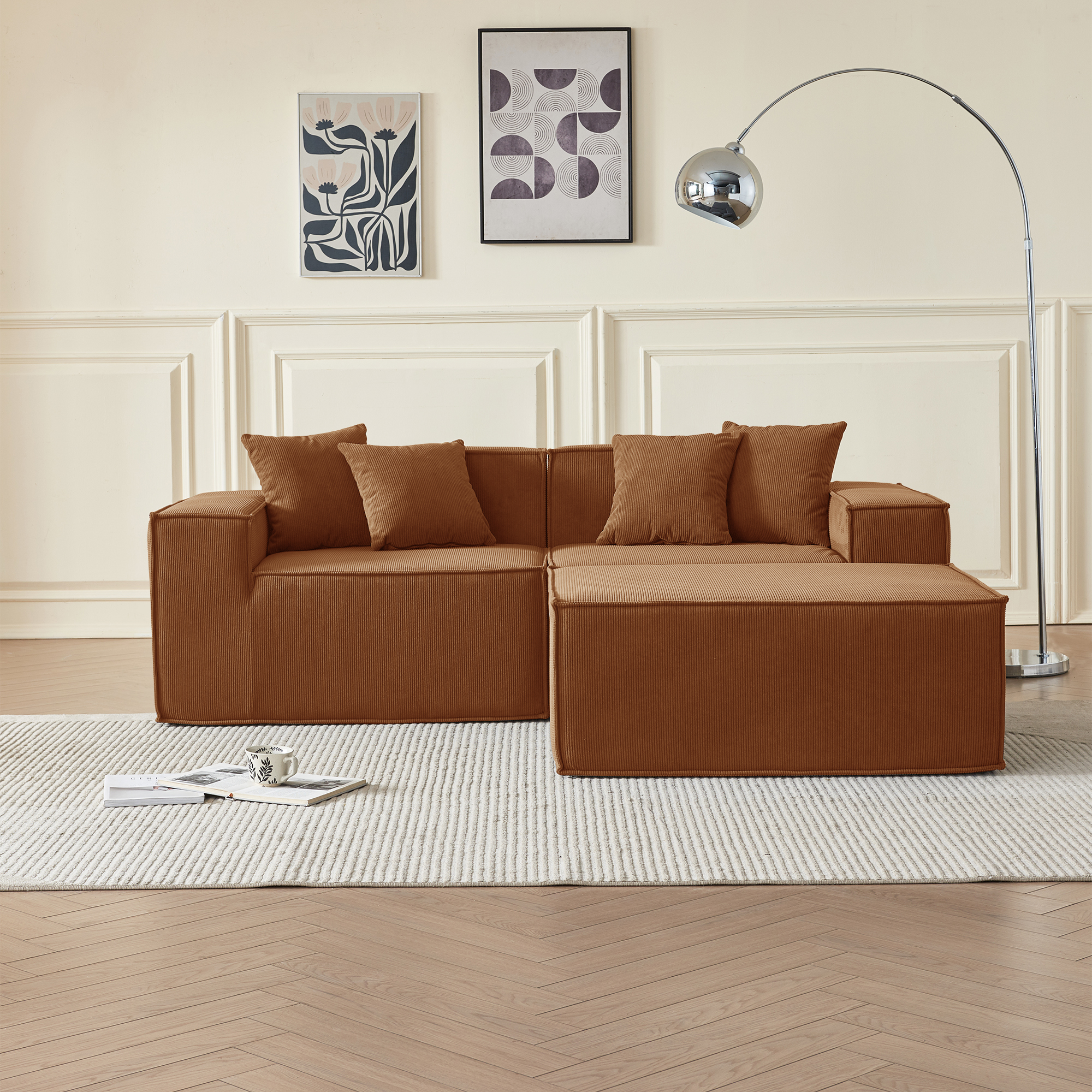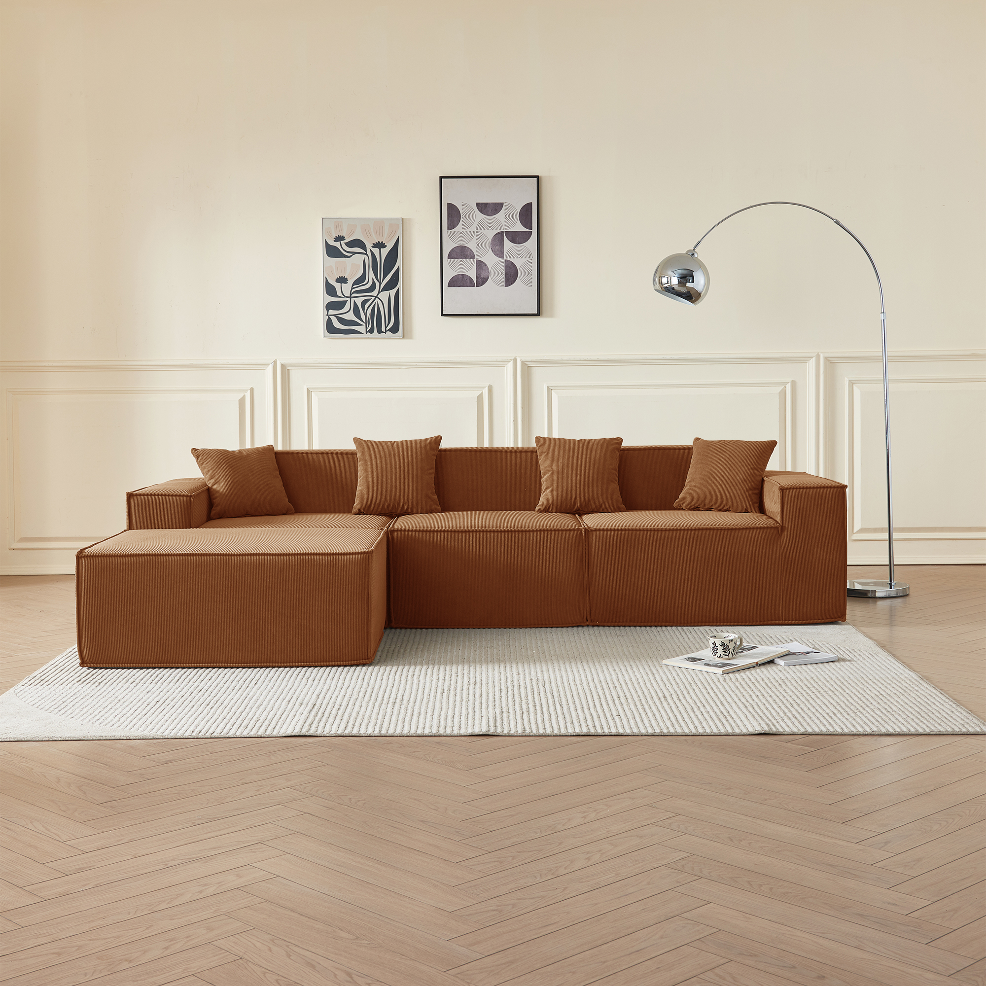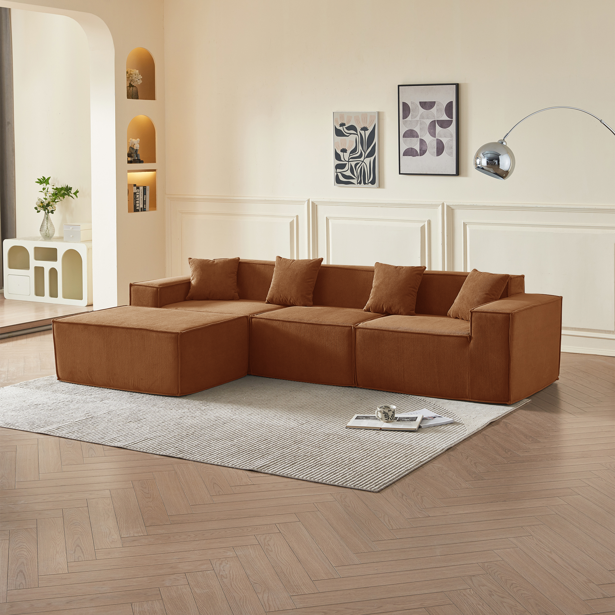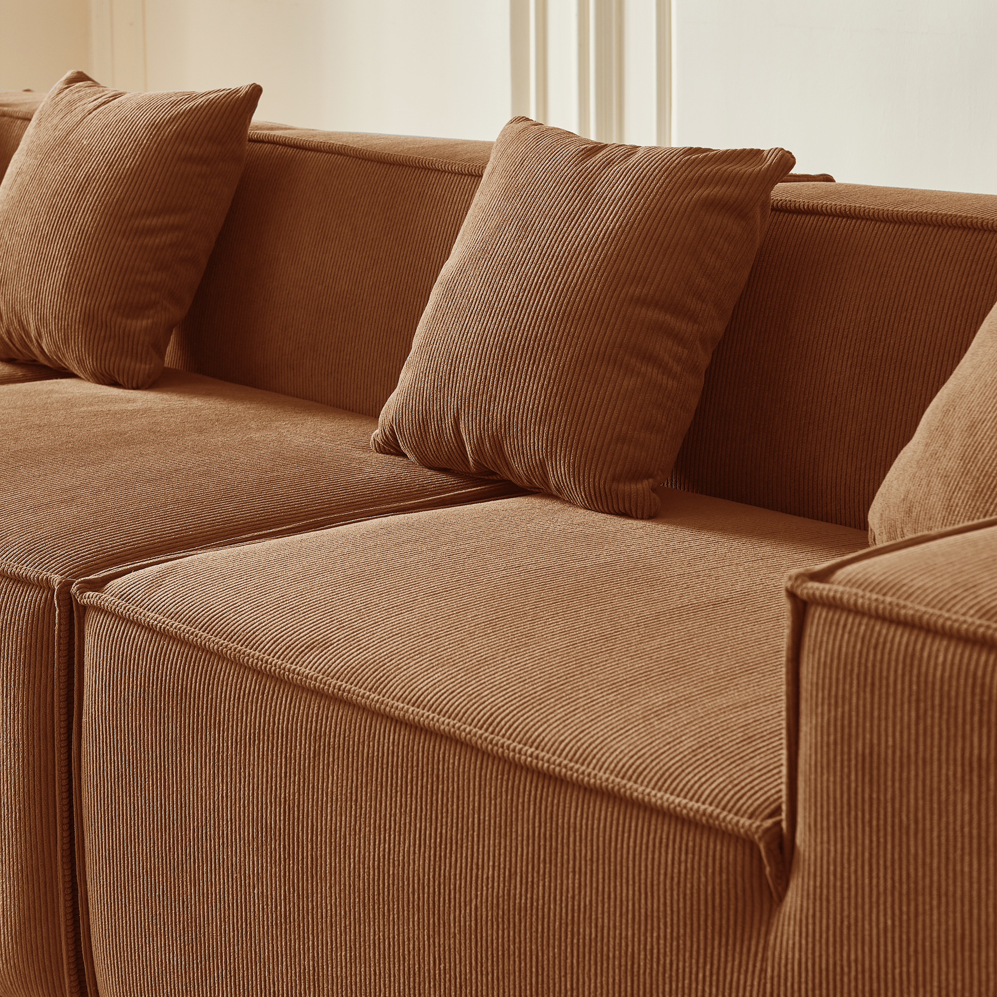 • Гармония обивки и цвета: оранжевый вельвет — это тактильное тепло и свет: его ворс нежно контактирует с кожей, обеспечивая идеальную вентиляцию и прохладу. В интерьере этот насыщенный, но не кричащий оттенок наполняет пространство атмосферой позднего осеннего солнца, создавая не броский, а глубинный акцент тепла, стабильности и гостеприимства, который успокаивает и настраивает на неторопливый отдых.