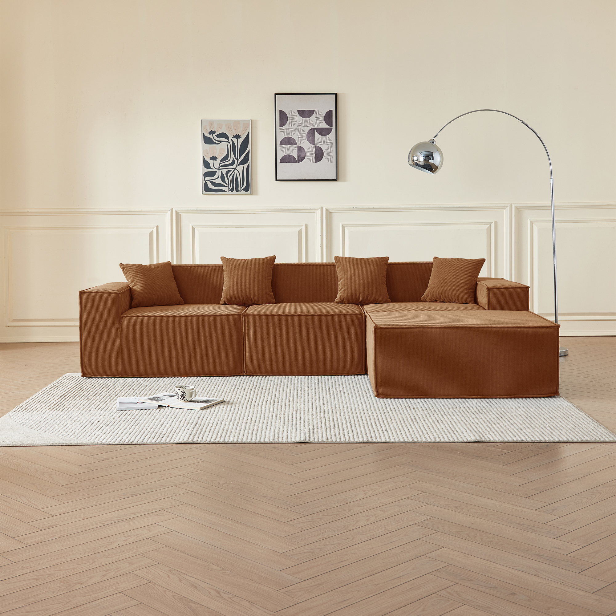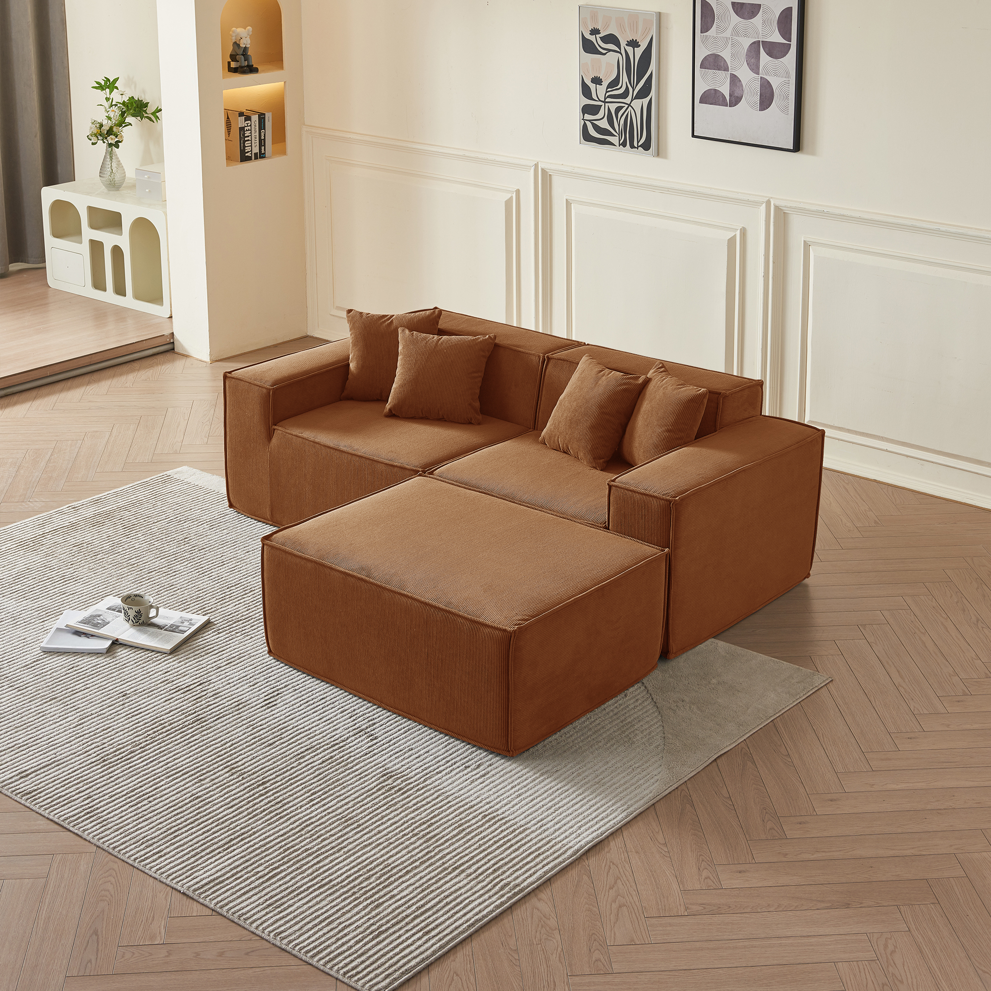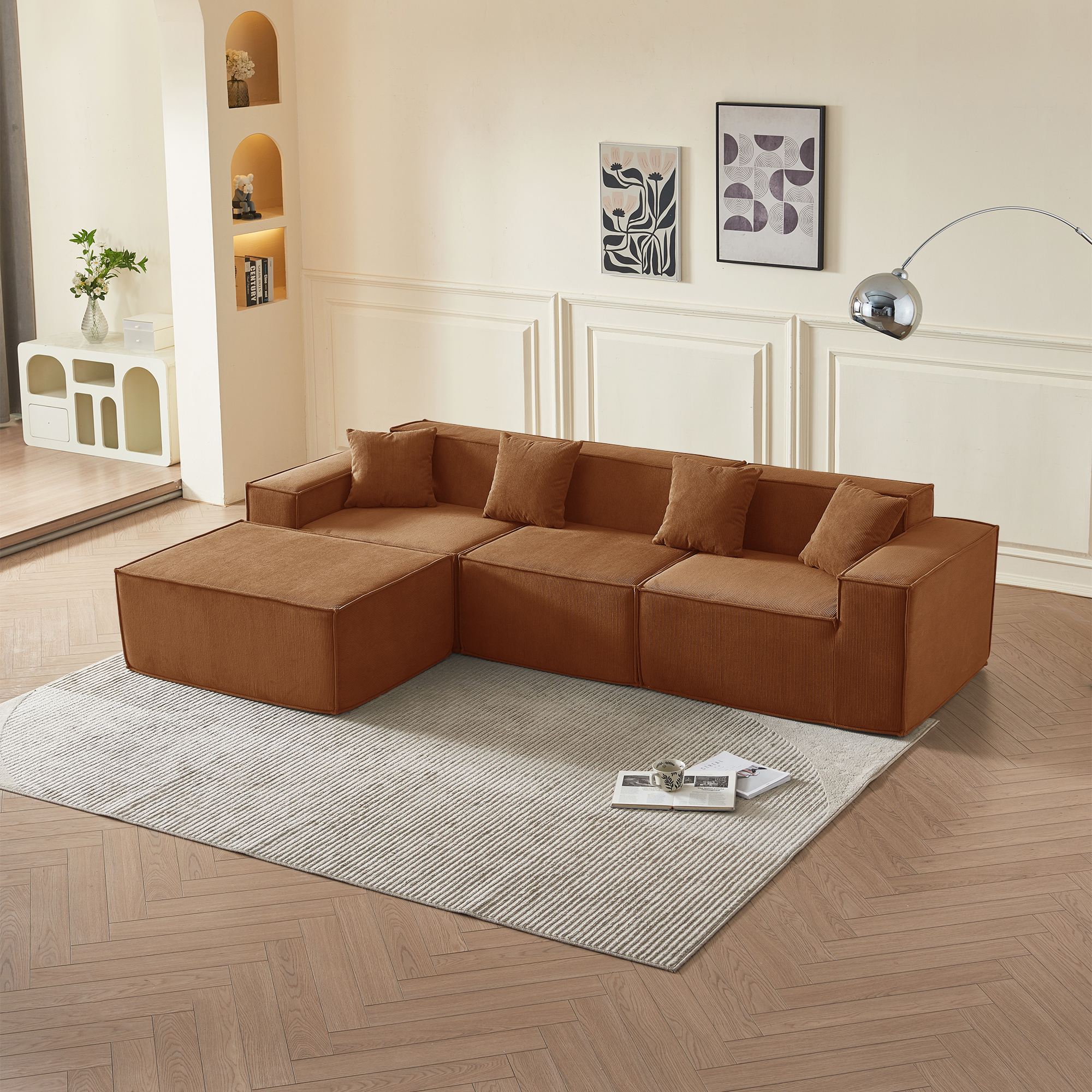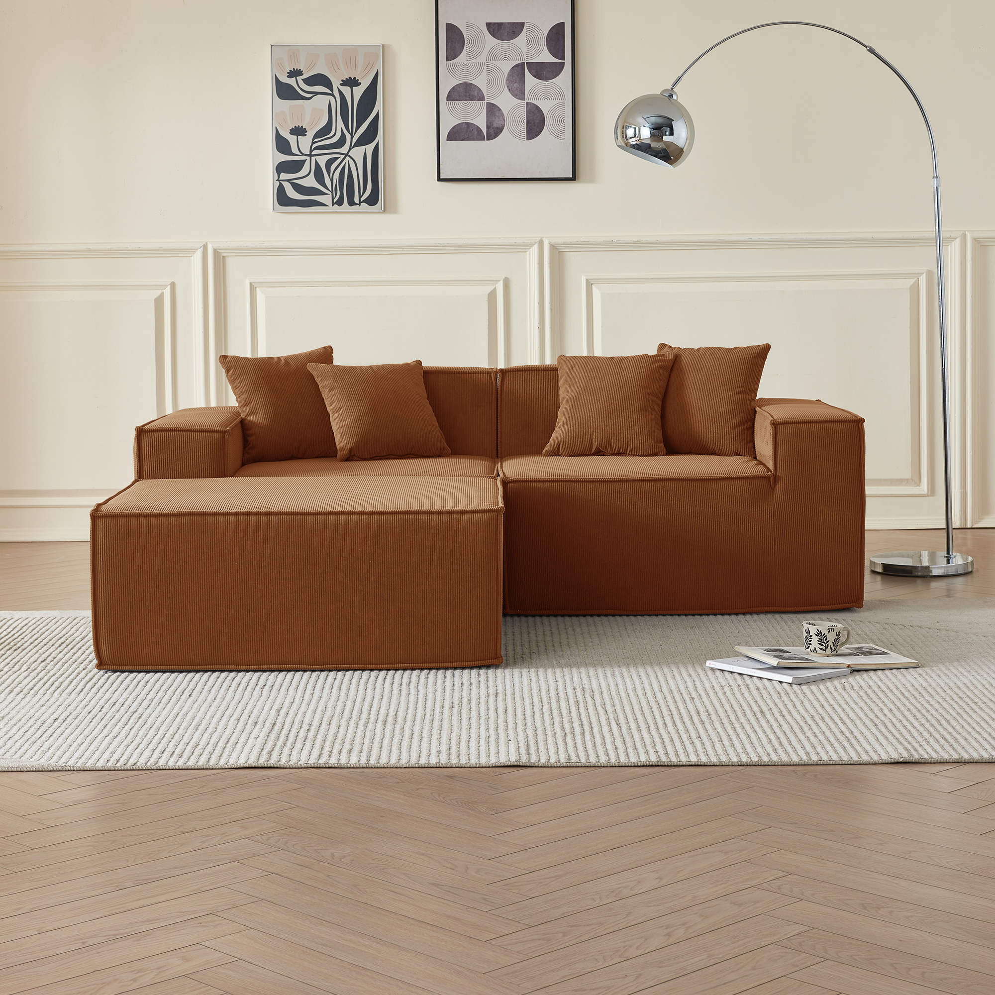• Гармония обивки и цвета: оранжевый вельвет — это тактильное тепло и свет: его ворс нежно контактирует с кожей, обеспечивая идеальную вентиляцию и прохладу. В интерьере этот насыщенный, но не кричащий оттенок наполняет пространство атмосферой позднего осеннего солнца, создавая не броский, а глубинный акцент тепла, стабильности и гостеприимства, который успокаивает и настраивает на неторопливый отдых.