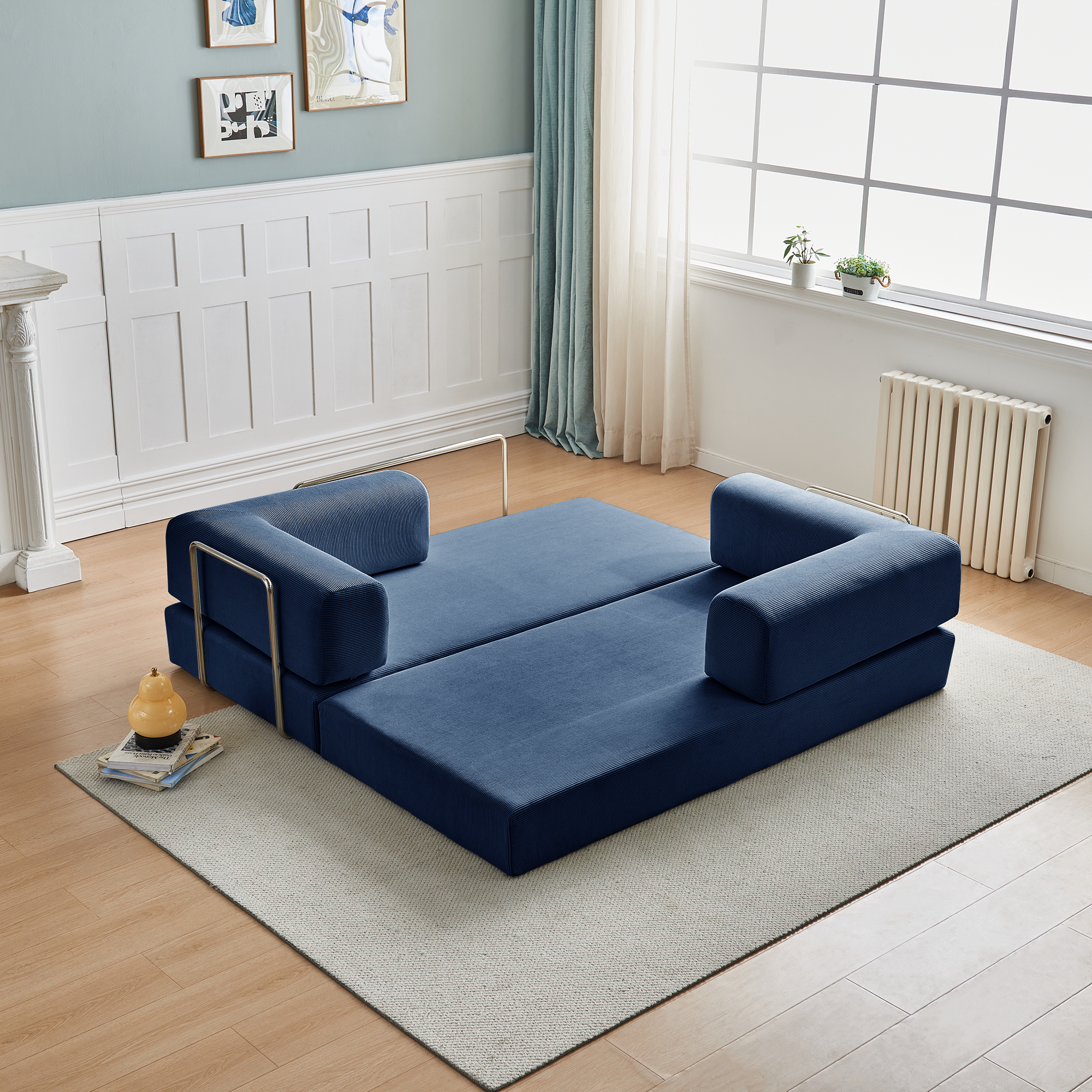 Представляем бескаркасный диван-кровать Boxsofa S062 в глубоком темно-синем оттенке — это не просто мебель, а готовое решение для современного дома.